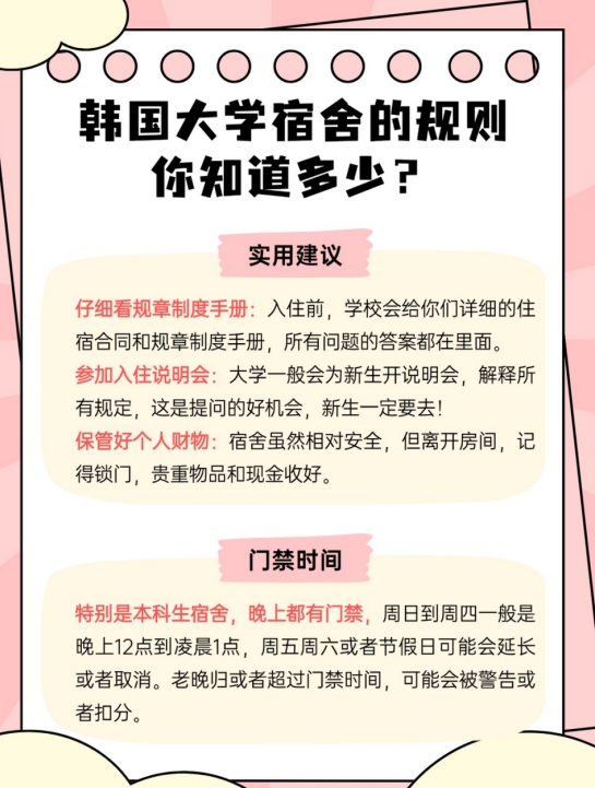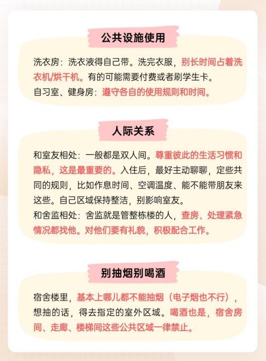 提前了解这些规定,可能相对严格,遵守它们,你就能舒服地享受宿舍生活。